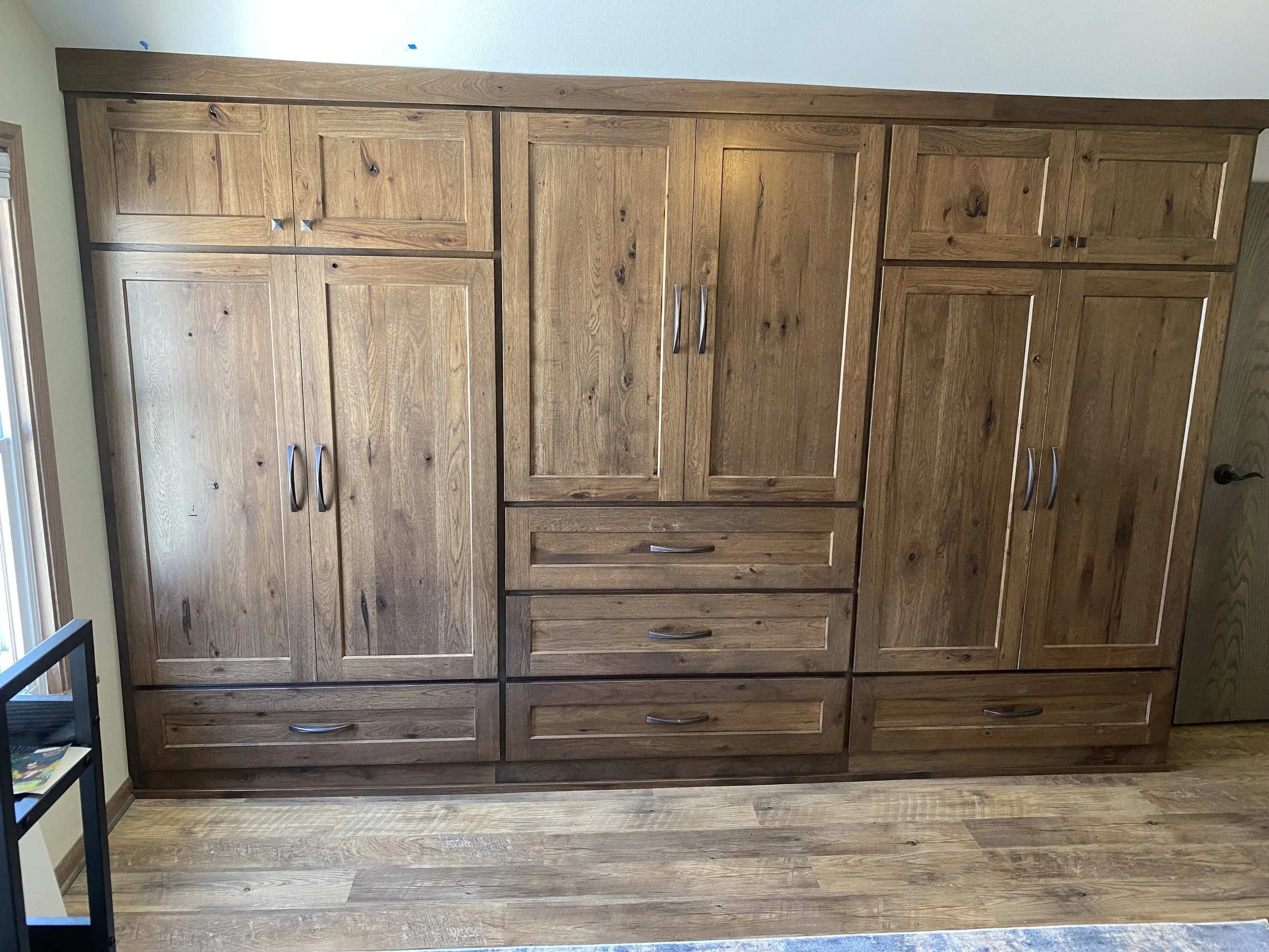 From floor to ceiling, timeless cabinetry meets rich red oak — crafted for seamless storage and natural warmth